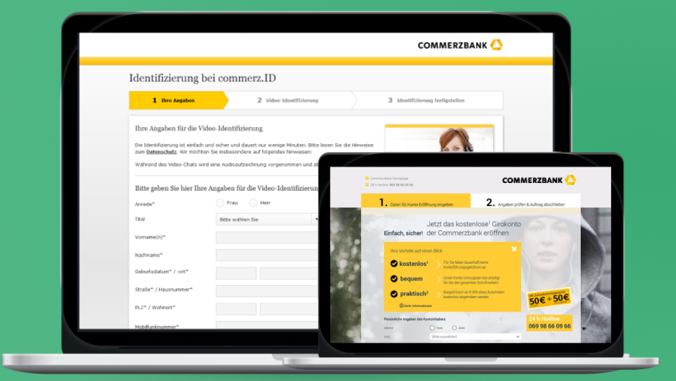 We developed 2 platforms for Commerzbank. First platform enabled bank customers to apply for the card online. The second platform kept the application function and added the person identification via live camera and online chat to allow clients to confirm their identity and receive their new card without going to the bank office.