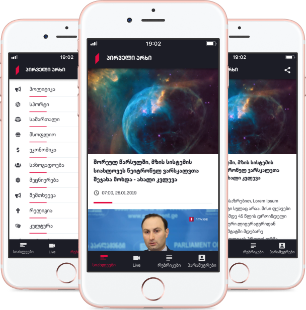 After the success of the news platform, we worked together again on 2 mobile apps – Radio Saqartvelo and 1TV News.