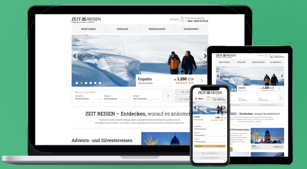 Zeit Reisen offers a wide variety of online services to its customers. Visitors can plan, book, and purchase tours almost everywhere in the world via the new platform. We made sure the website is user friendly, inviting, and responsive, i.e. can adjust to different screen sizes. The back-end of the website is integrated with the company’s internal CRM.